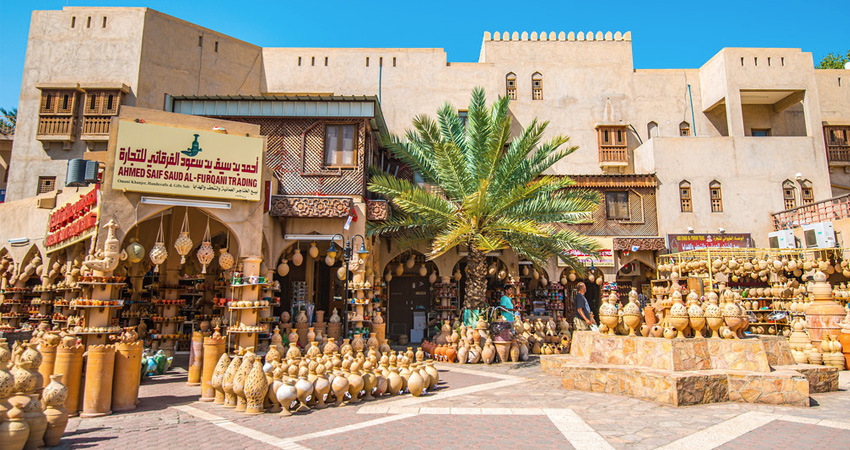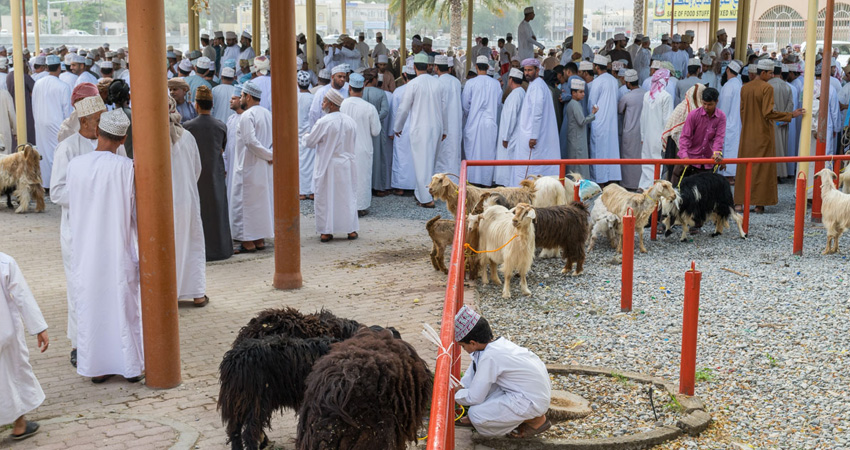 Next, we visit the bustling Nizwa Souq near the iconic fort, the heart of Nizwa’s vibrant culture. We explore the narrow alleys lined with colorful stalls offering an array of traditional Omani handicrafts, spices, pottery, silver jewelry, and delectable Omani dates. The aromatic spices and the sound of traders haggling create an authentic atmosphere that immerses us in Omani daily life. On Fridays, the souq is abuzz with activity as locals and visitors gather for the famous Nizwa Friday Goat Market, where traders and herders from far and wide come to sell and buy goats, sheep, and cattle.
